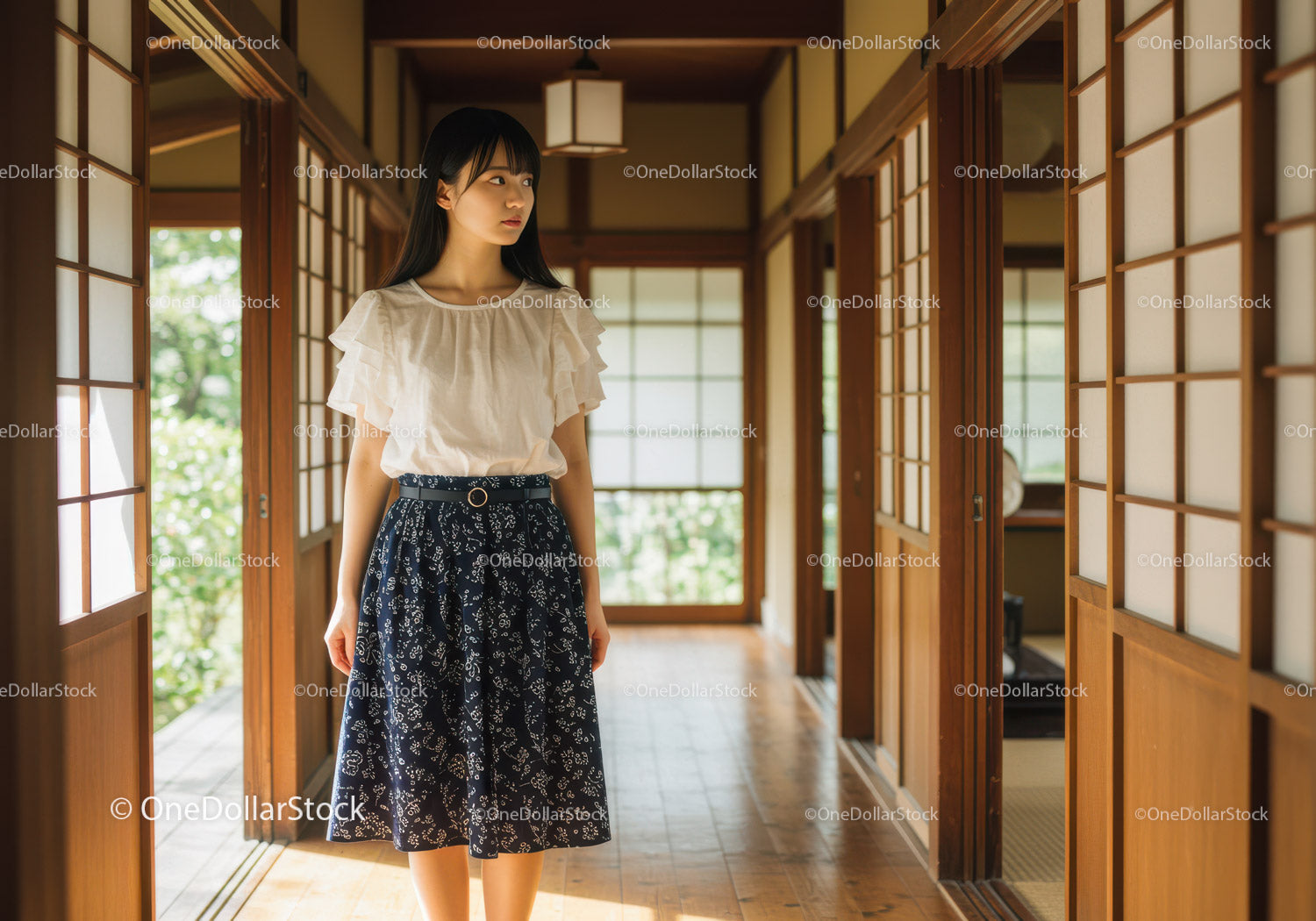 Young Woman in Traditional Japanese Clothing in Wooden Interior